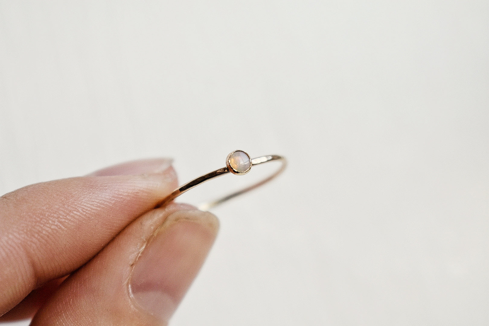 Introducing our newest edition to the gold ring collection. This ring is made with one 3mm Genuine Australian Opal set in a 14k gold filled bezel ring.