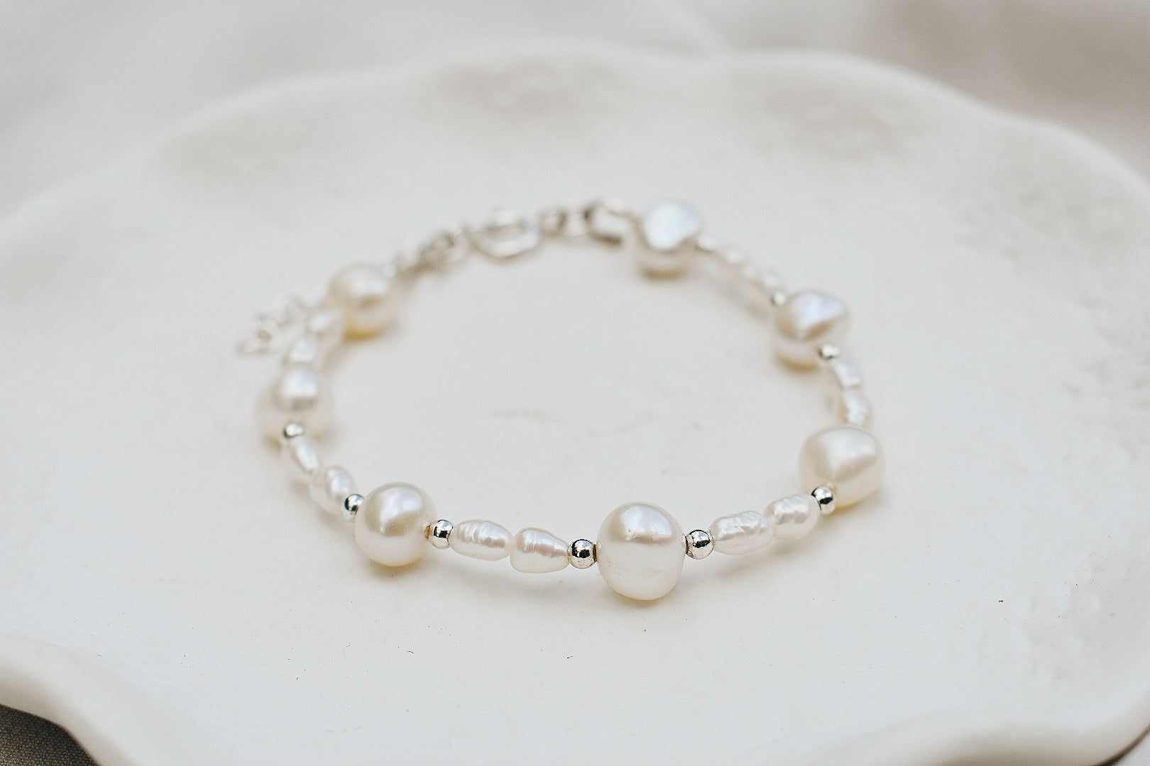 These bracelets are handmade using genuine freshwater baroque pearls and 925 Sterling Silver fixings. Baroque pearls are pearls that have not been polished or filed, so their natural form has not been changed, which is what gives this bracelet it's beautiful, organic look. Each bracelet is approx. 6 inches in length with a 2 inch extender chain. If you would like a different size please drop us a message at checkout and we can tailor it for you.