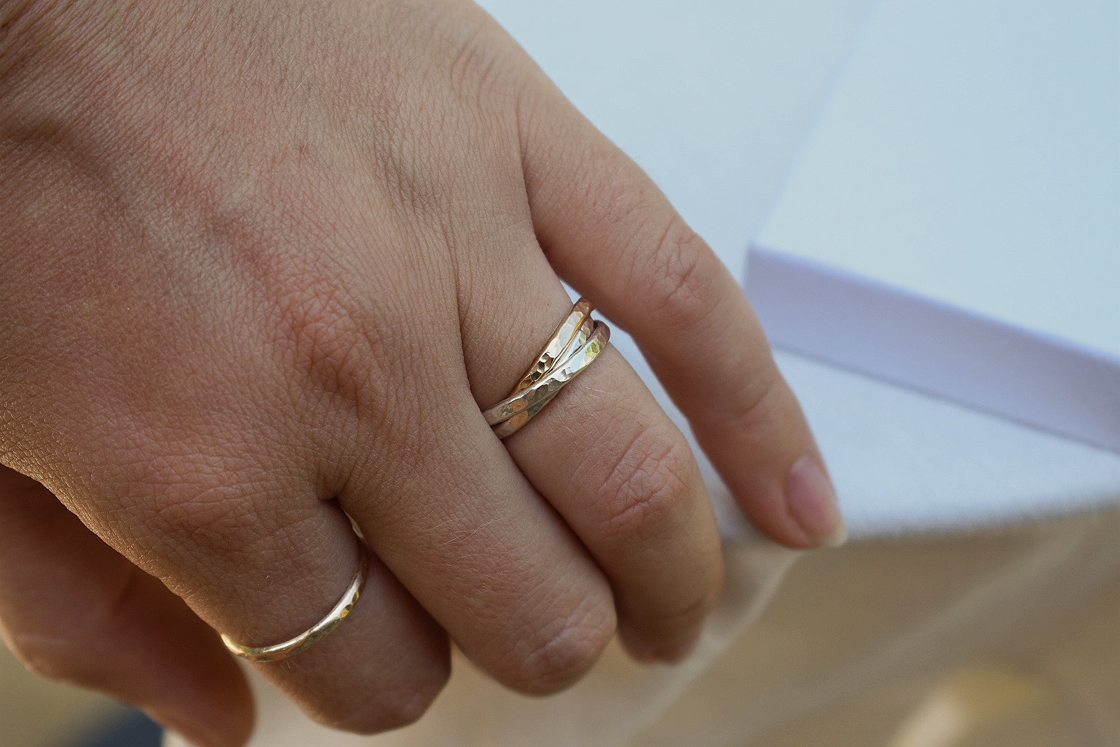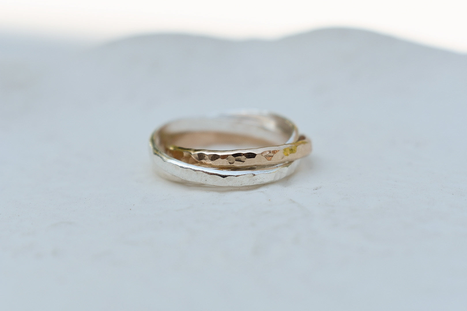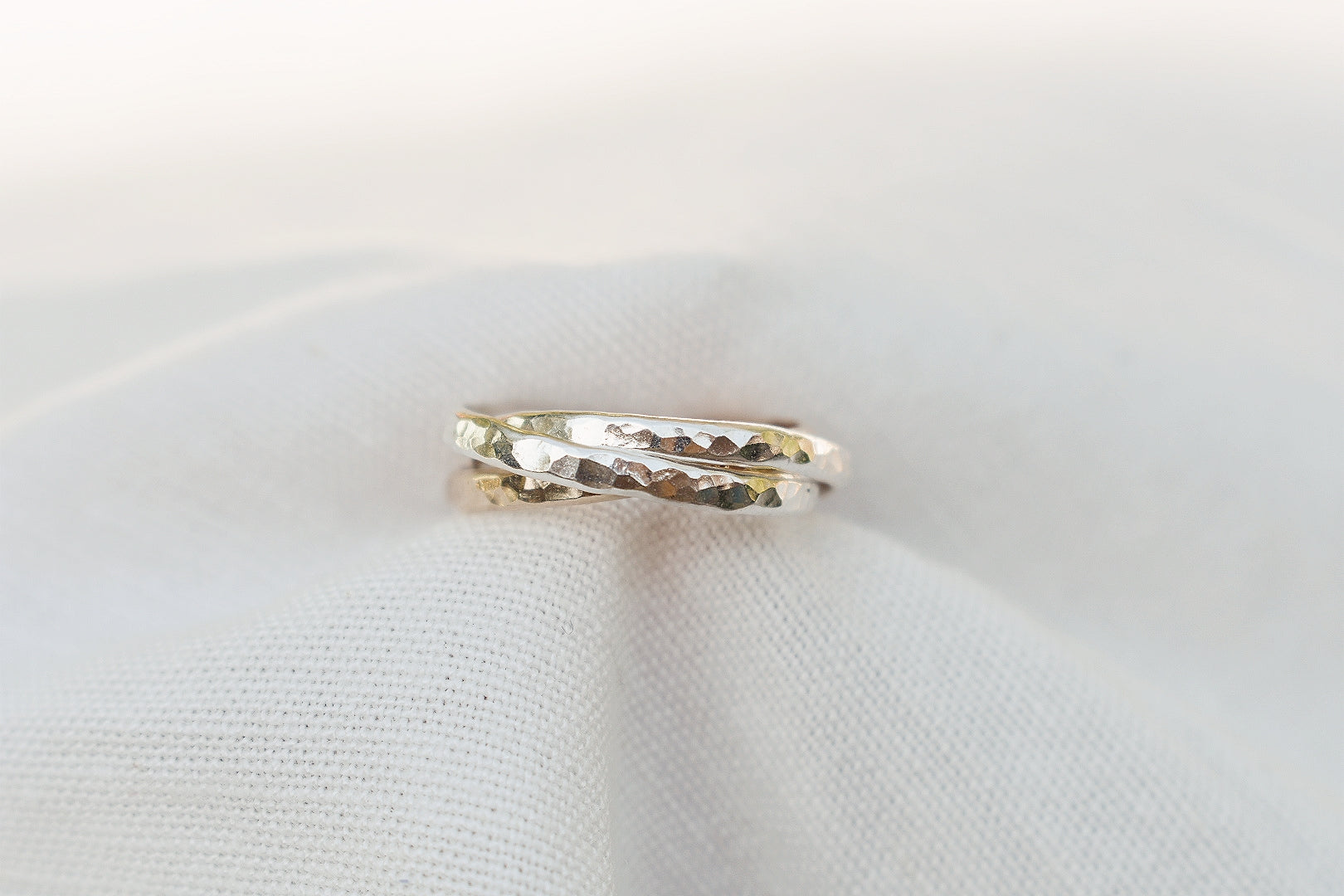 Introducing our new Handmade Gold Filled and Sterling Silver Interlocking Russian Fidget Ring. Handcrafted in our London based studio, this spinner ring offers a blend of luxurious 14k gold fill and 925 sterling silver metals. Gold Fill is 14k gold chemically bonded ensuring durability and everyday wear. Our twist ring is waterproof, hypoallergenic and tarnish free.